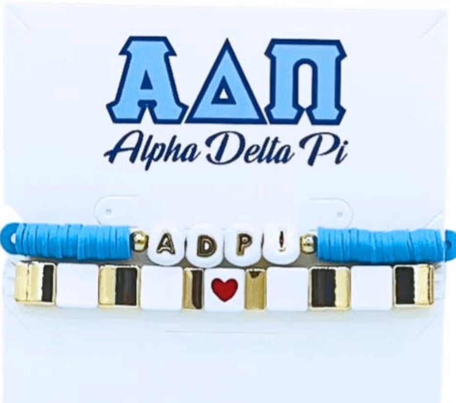 Show off your sorority sisterhood with these charming stackable bracelets! Show off your Alpha Delta Pi pride with each I ❤️ Alpha Delta Pi bracelet. These stackable beauties are perfect for stacking and making a statement. Ready, Set, Stack!