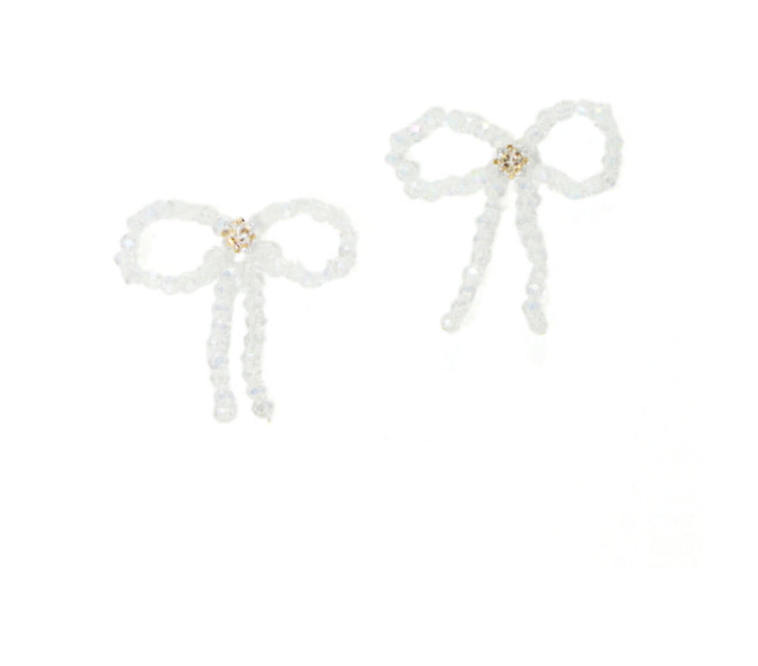 Elevate your everyday style with the Meredith earrings. Crafted with a delicate white ribbon bow and beaded details, these earrings add a touch of elegance to any outfit. Perfect for any occasion, they make a thoughtful gift or a charming addition to your own jewelry collection.