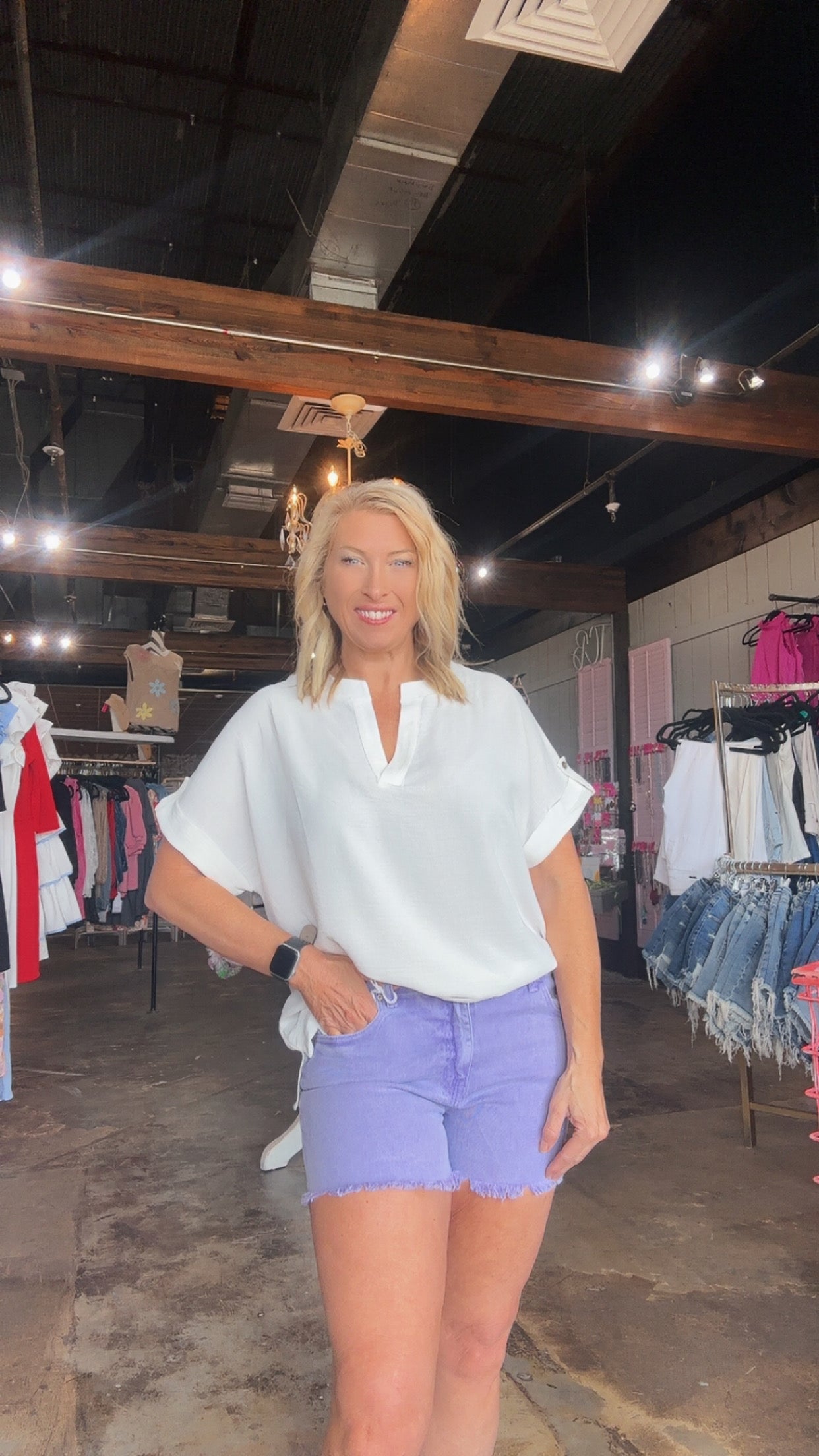 Add some vintage vibes to your wardrobe with our Vintage Violet acid wash shorts by Zeanna! These frayed cut off shorts have a front rise of 9.75 and a comfortable 3.25 inseam. Made with 97% cotton and 3% spandex for a perfect fit and stylish look. Upgrade your summer style now!