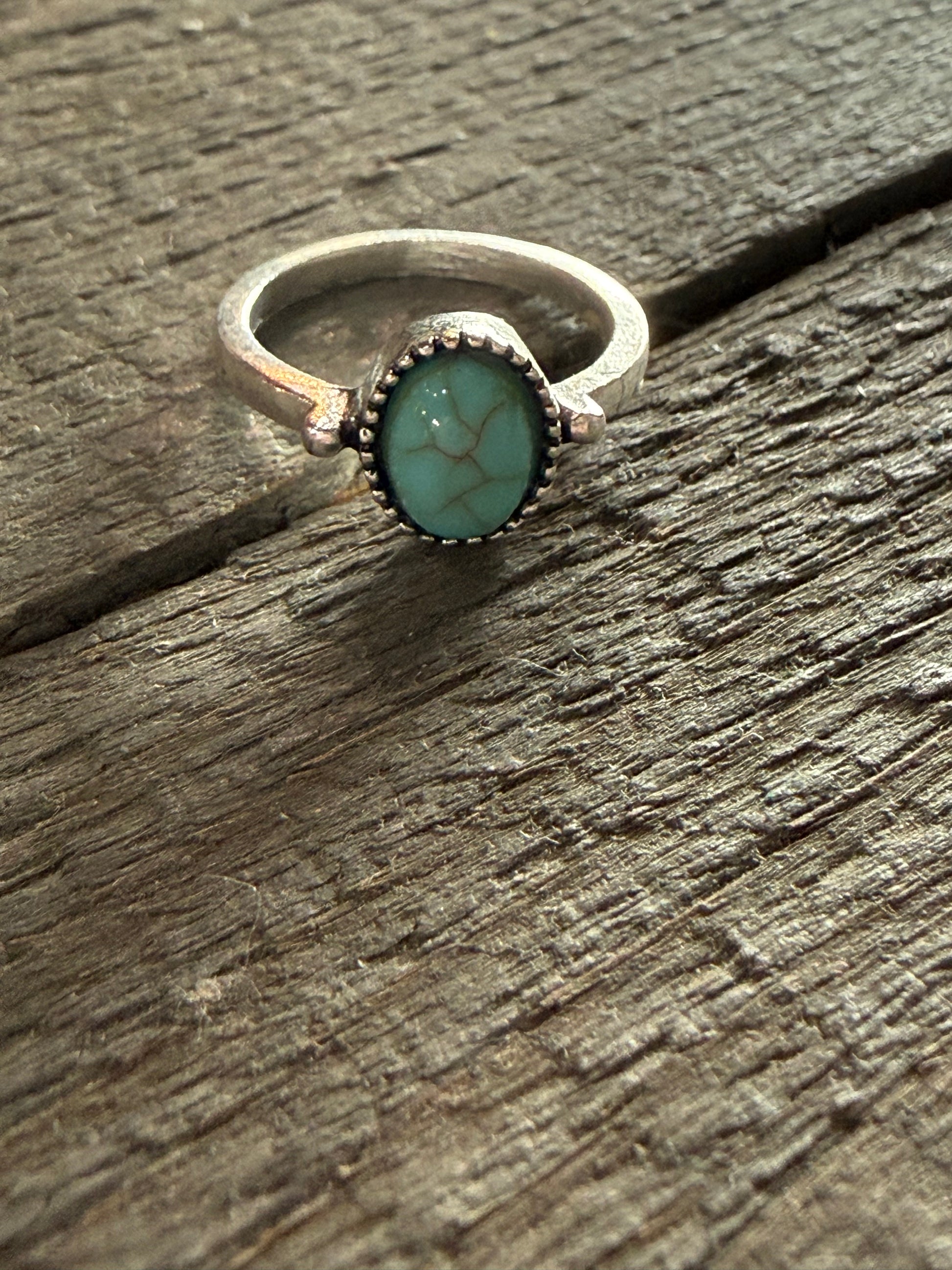 The Western Day ring features a striking combination of turquoise and silver, offering a durable and stylish accessory. Turquoise is known for its historical significance and potential healing properties, while silver provides a classic aesthetic and longevity, making this ring suitable for both everyday wear and special occasions.