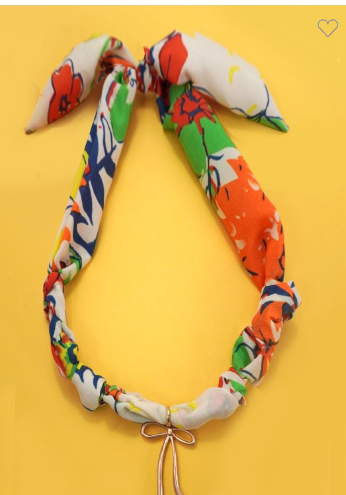 Elevate your style with Whitley - the perfect accessory to add a touch of elegance to any outfit. This scarf necklace features a gold bow charm, adding a chic touch to your look. Look and feel confident with this versatile and sophisticated piece.