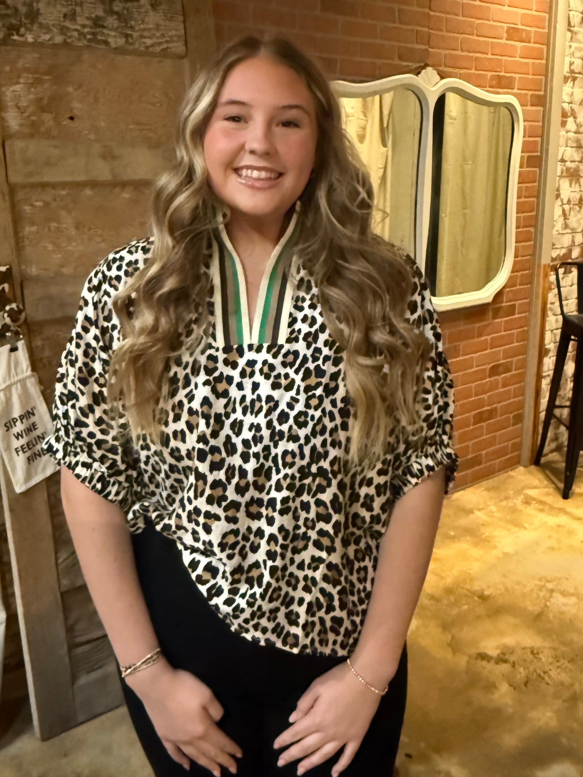 Unleash your wild side with our Wild Streak top! Featuring a fierce leopard print and bold green color contrast, this oversized fit will have you feeling confident and daring. Perfect for making a statement and standing out from the crowd.